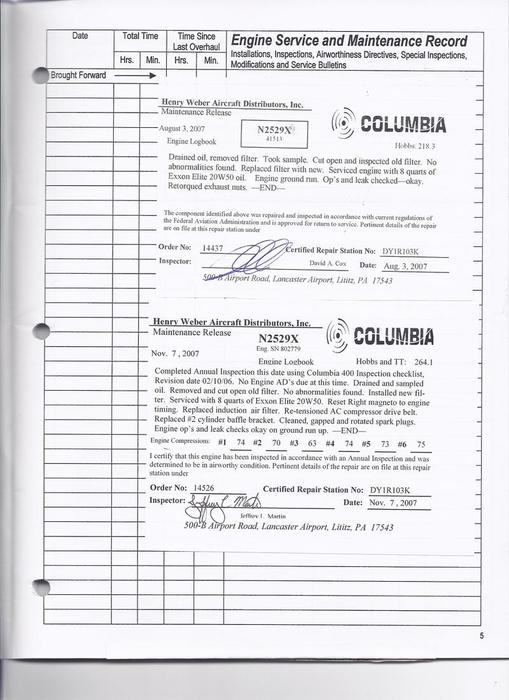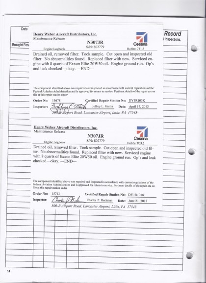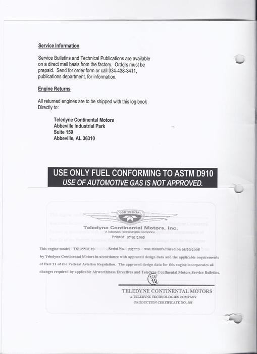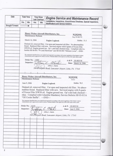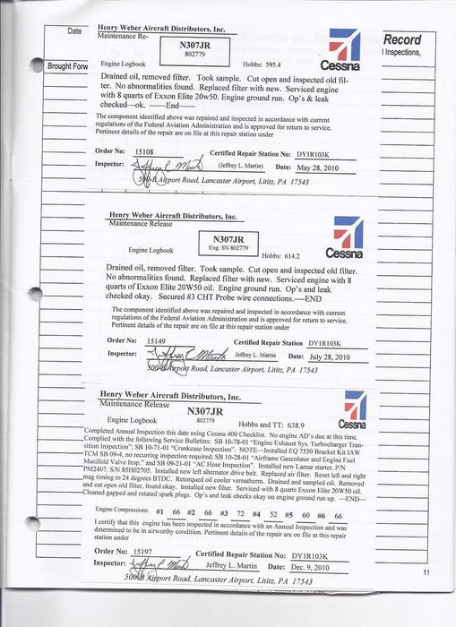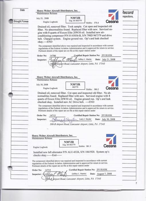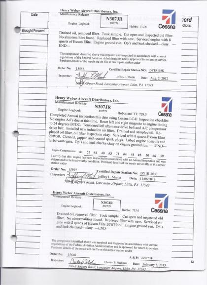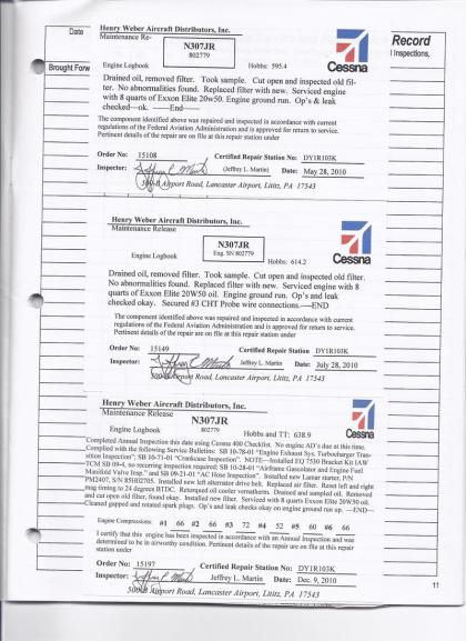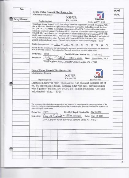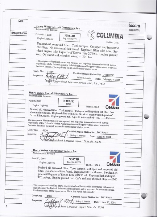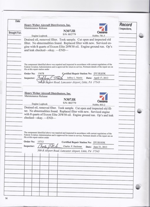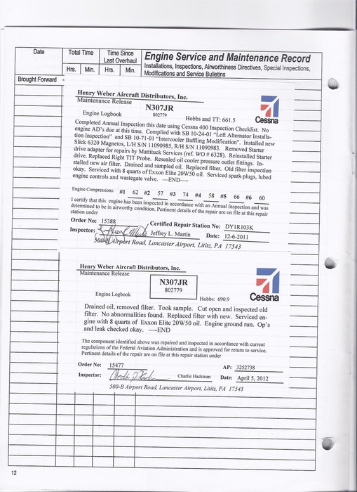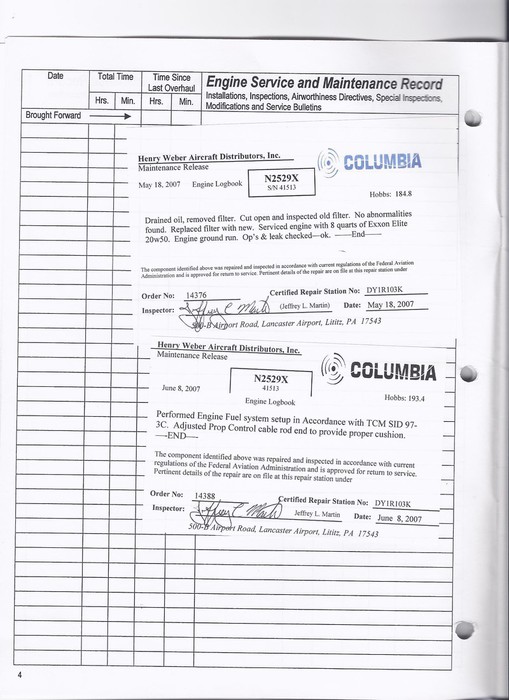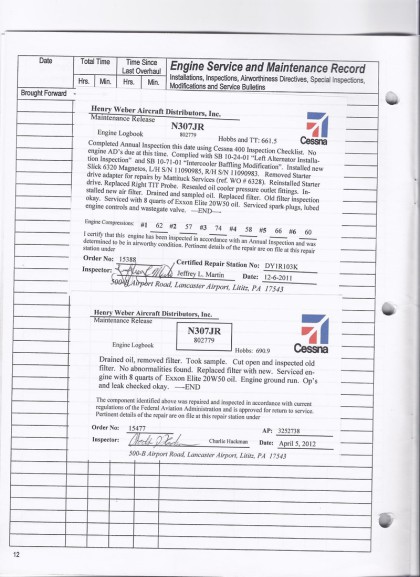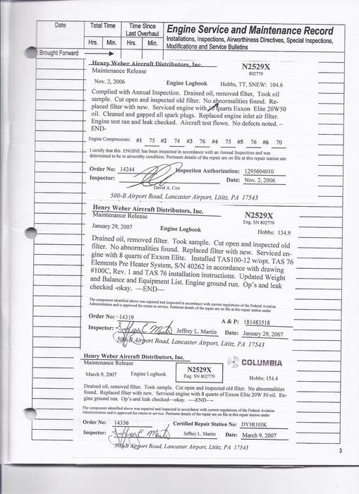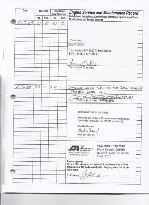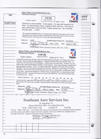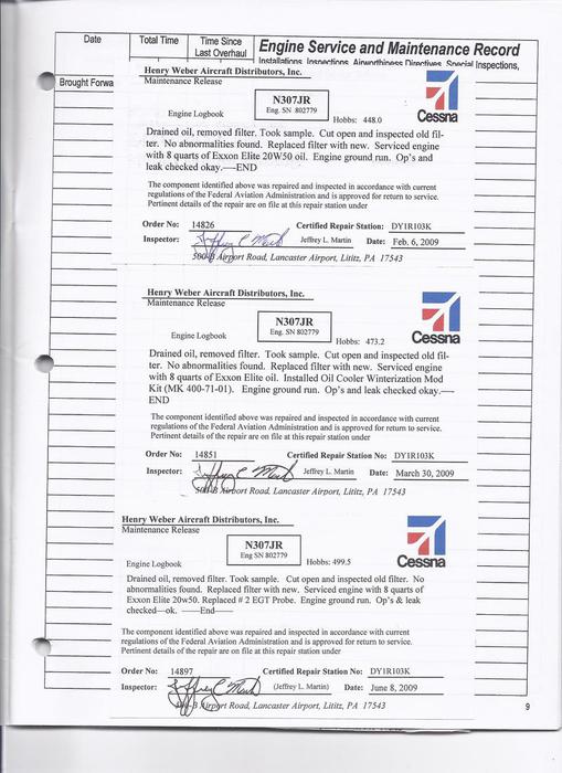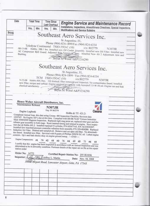 N307JR - Engine Log Book